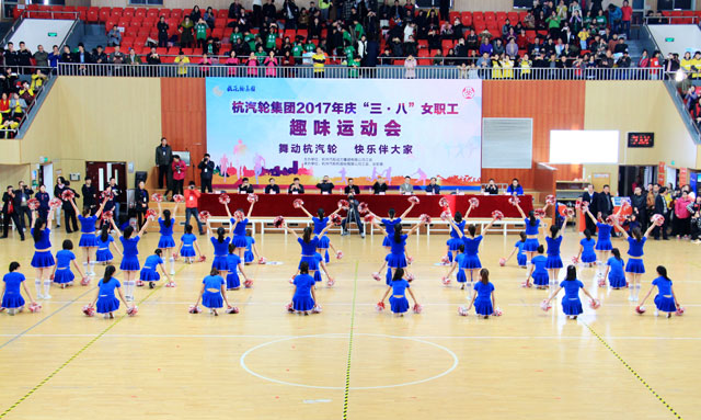 为庆祝第107个“三八”国际劳动妇女节,丰富女职工的业余生活,3月4日,杭汽轮集团2017年庆“三·八”女职工趣味运动会在下城区体育馆拉开帷幕。我司百余名女职工和男职工代表参加了“穿针引线”、“猪八戒背媳妇”、“呼啦圈过山车”、“螃蟹背西瓜”、“三人四足”、“跳大绳”这六个项目的比拼,充分释放激情、享受运动的快乐。