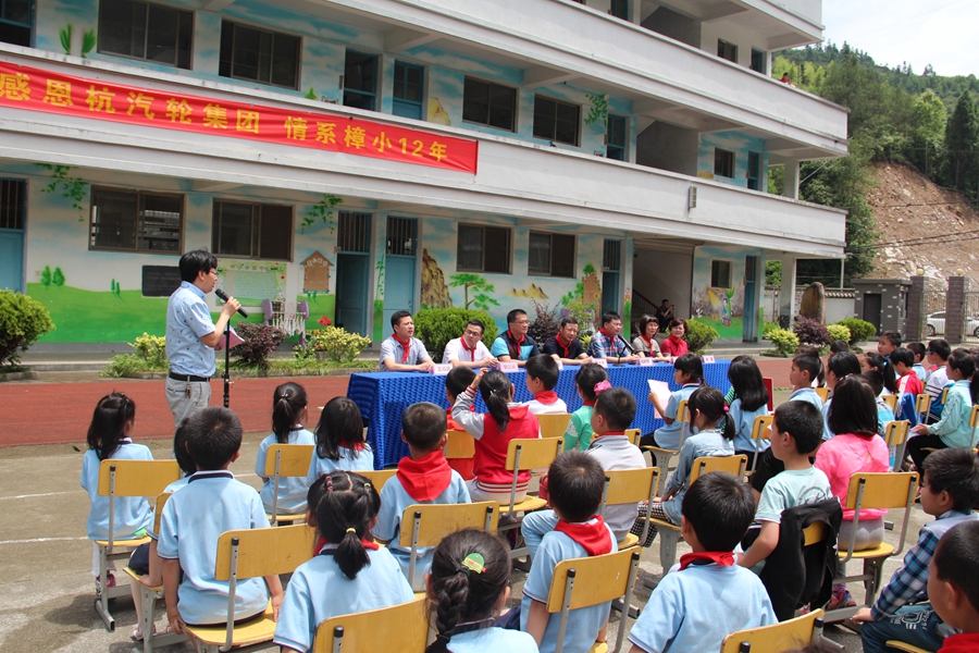 6月7日,对于淳安县中洲镇杭汽轮希望小学的同学们来说,是温暖而又特别的一天,因为6690必发集团牵手杭汽轮希望小学爱心捐赠仪式在该校操场上举行。杭汽轮集团党委副书记李士杰、党办主任高晓萍,6690必发集团总经理吕永洪、党总支书记陈瑾等一行走进了杭汽轮希望小学,不仅为全校120余名同学送去了体育用品和书籍,同时我司向杭汽轮希望小学捐赠20万元人民币,助力该校宿舍楼建设。